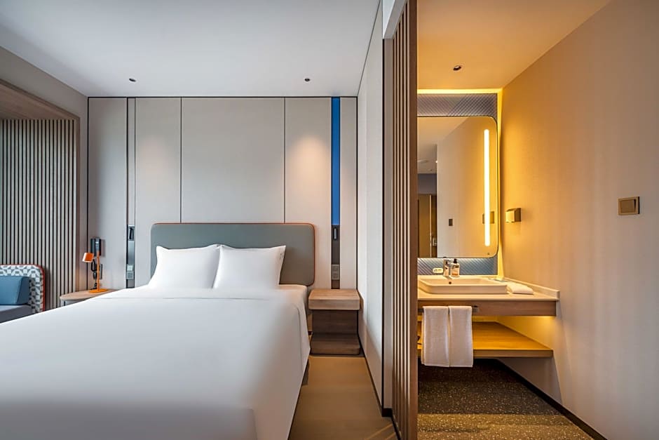On-site dining at Great Room 智·空间 invites travelers to enjoy a Modern ambiance with a menu that blends Chinese and International flavors, a tasty way to fuel adventures in Jiangmen.